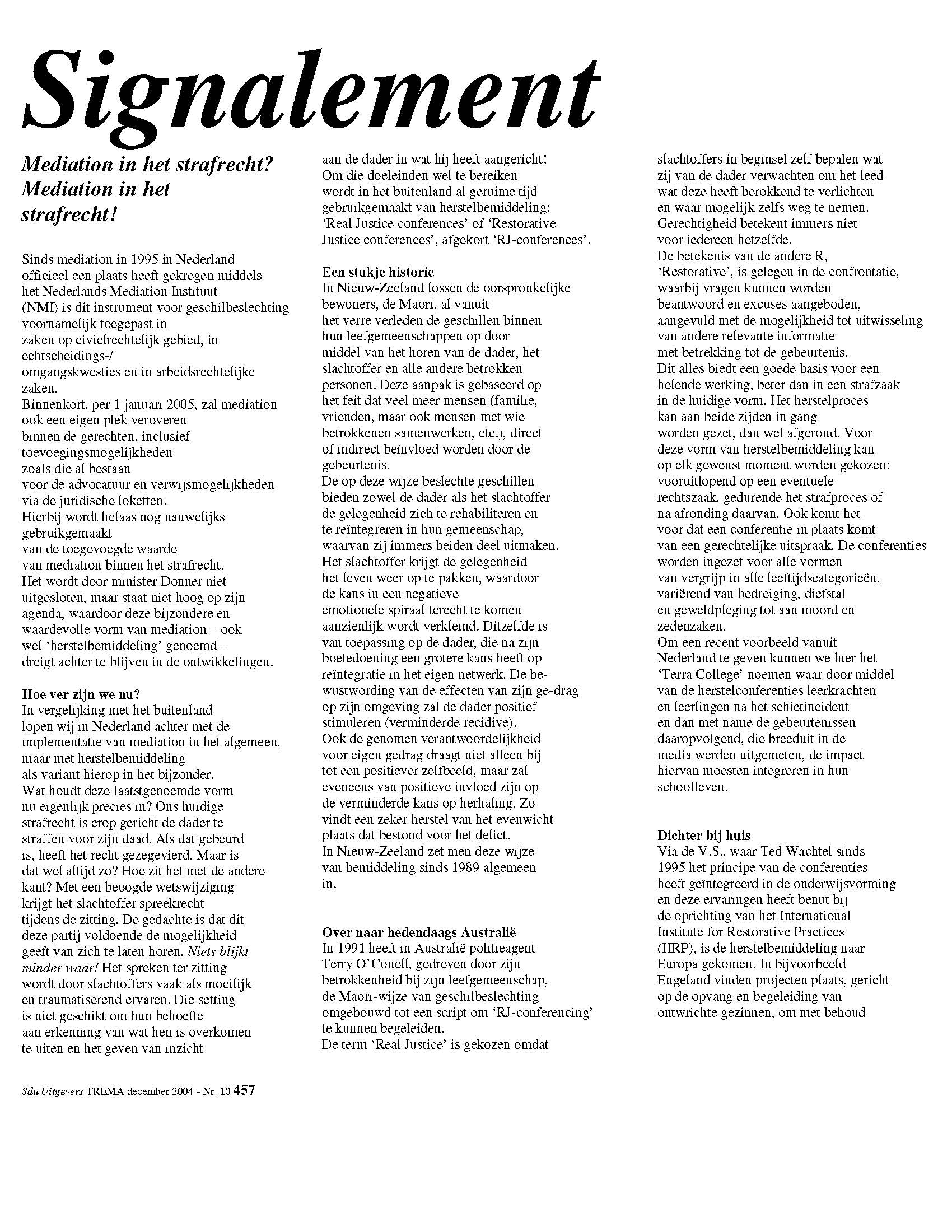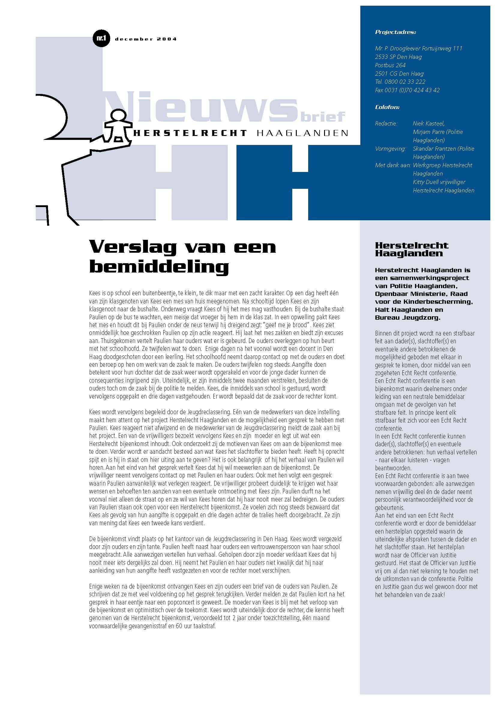Praktijkbeschrijving van een Herstelbemiddeling.